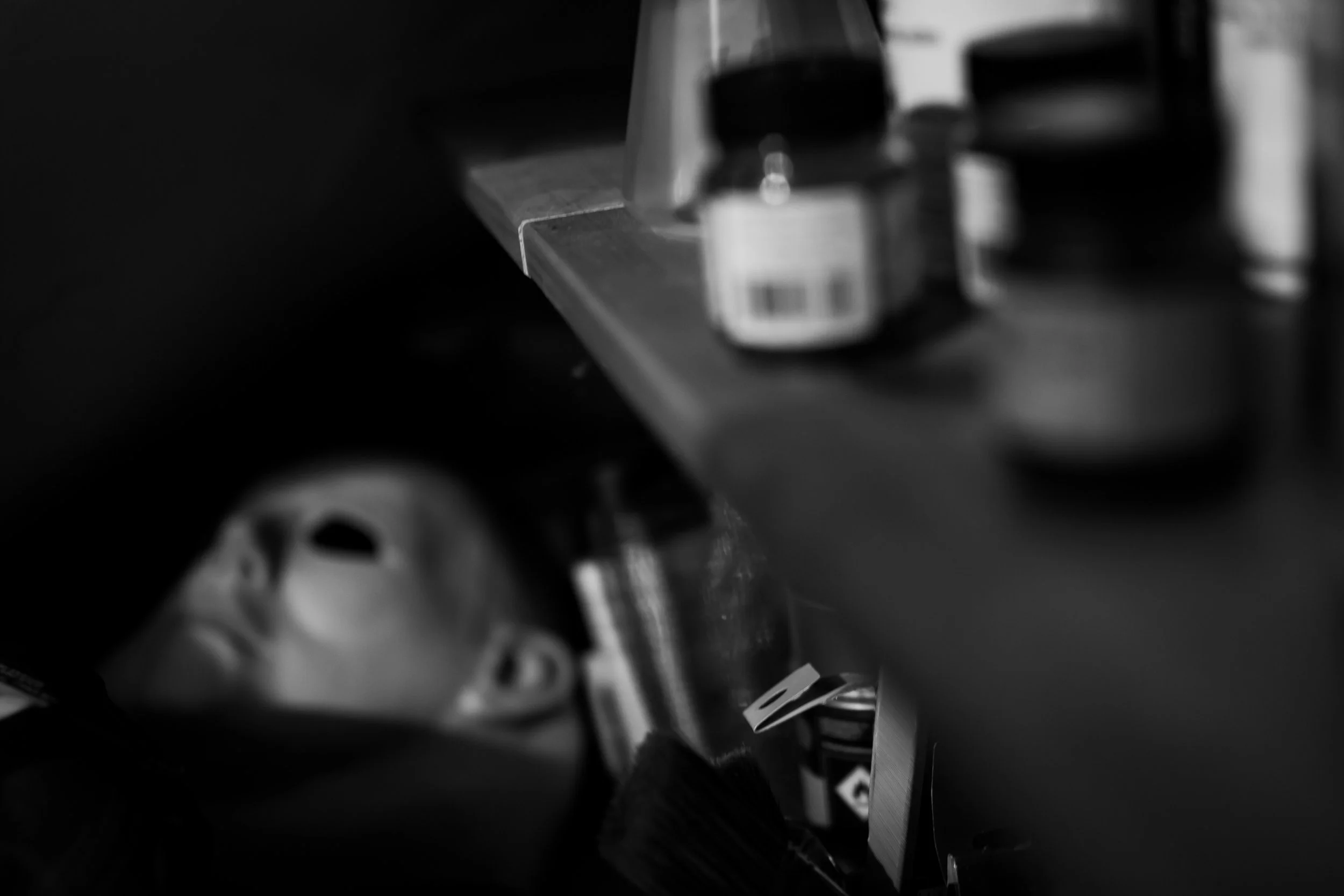 HE CAME HOME | mask MISTER BLISTER | mask STARMAN | mask HOME COMING | lino print CHARIOTS OF PUMPKINS | lino print CREEP | lino print GET OUT | lino print